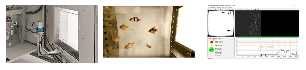 ÇÏõ¼ö∙È£¼Ò¼ö∙¹æ·ù¼öÀÇ ½Ç½Ã°£ ¼öÁú¿À¿° ¸ð´ÏÅ͸µ¿¡ »ç¿ëµÇ°í ÀÖ´Â Àåºñ·Î¼, µ¶¼º½ÃÇè¿¡ °¡Àå ³Î¸® »ç¿ëµÇ´Â ½ÃÇè»ý¹°(Zebra fish)À» »ç¿ëÇÏ¿© ¾î·ùÀÇ À¯¿µ Çൿ ÆÐÅÏÀ» ¿¬¼ÓÀûÀ¸·Î ºÐ¼®ÇÔÀ¸·Î½á ½Ã·á ¼Ó µ¶¼º¹°Áú À¯¹«¸¦ ½Ç½Ã°£ ¿¬¼ÓÀûÀ¸·Î ¸ð´ÏÅ͸µÇÏ´Â ÀåºñÀÔ´Ï´Ù. ¾î·ù »ý¹°°¨½ÃÀåÄ¡ÀÇ ÃøÁ¤¹æ½ÄÀº ¿¬¼ÓÀûÀ¸·Î ½Ã·á°¡ À¯ÀԵǴ ¼öÁ¶ ¾È¿¡¼ Ä«¸Þ¶ó¸¦ ÅëÇØ ½Ç½Ã°£À¸·Î ½ÃÇè¾î·ùÀÇ À¯¿µ ¼Óµµ, ÇൿÆÐÅÏ, °³Ã¼ Å©±â, °³Ã¼ ¼ýÀÚ, ¼öÁ¶ ³» °¢ °³Ã¼ÀÇ À§Ä¡ µîÀ» °üÂûÇÑ ÈÄ, µ¿È»ó ºÐ¼® ÇÁ·Î±×·¥À» ÅëÇÏ¿© °¢ ÆÐ·¯¹ÌÅÍ¿¡ ÇØ´çµÇ´Â ÇൿÆÐÅÏÀ» ºÐ¼®ÇÑ ÈÄ, À̸¦ Á¾ÇÕÀûÀÎ ¼öÄ¡·Î Ç¥½ÃÇÑ °ÍÀ»¡°µ¶¼ºÁö¼ö¡±¶ó´Â ÇüÅ·Πǥ½ÃÇÕ´Ï´Ù. ÀÌ µ¶¼ºÁö¼ö°¡ ¹Ì¸® ¼³Á¤µÈ ¼öÄ¡¸¦ ÃʰúÇÏ°Ô µÇ¸é °æº¸°¡ ¹ß»ýµË´Ï´Ù. ¾î·ù´Â ôÃßµ¿¹°·Î¼ »ý¹°°èÅëÁøÈÇлóÀ¸·Î Ÿ »ý¹°°æº¸ÀåÄ¡ÀÇ ½ÃÇè»ý¹°¿¡ ºñÇØ Àΰ£°ú °¡Àå °¡±î¿ì¹Ç·Î Àΰ£¿¡°Ô À¯ÇØÇÑ µ¶¼º¹°ÁúÀ» °ËÃâÇÏ´Â »ý¹°°æº¸ÀåÄ¡·Î »ç¿ëµÉ ¼ö ÀÖ½À´Ï´Ù. ¿¹¸¦ µé¾î, ÁßÃ߽Űæ°è¿Í °ü°èµÇ´Â µ¶¼º¹°ÁúµéÀº Ÿ »ý¹°°æº¸ÀåÄ¡¿¡¼´Â °ËÃâÇϱⰡ ¾î·Á¿î °æ¿ì°¡ ¸¹Áö¸¸ ¾î·ù »ý¹°°æº¸ÀåÄ¡´Â °ËÃâÇÏ°Ô µË´Ï´Ù. ÀÌ °£´ÜÇÏÁö¸¸ ¾ÆÁÖ °¨µµ°¡ ³ôÀº ¾î·ù »ý¹°°æº¸ÀåÄ¡´Â ÇÏõ, ´ï, ¿ø¼ö°ø±Þ½Ã½ºÅÛ, Çϼöó¸®Àå ¿ø¼ö ¹× 󸮼ö¿¡ Çã¿ëÄ¡ ÀÌ»óÀÇ µ¶¼º¹°Áú Á¸Àç À¯¹«¸¦ °ËÃâÇÏ¿© Á¶±â°æº¸¸¦ Çϴµ¥ »ç¿ëµË´Ï´Ù. Á¦Ç°Æ¯Â¡ : 1. ¾î·ù´Â ôÃßµ¿¹°·Î¼ ¹°º·è, ¹Ì»ý¹°, Á¶·ù µî¿¡¼ °ËÃâÇϱâ Èûµç µ¶¼º¹°ÁúÀ» °ËÃâÇÔ 2. ½ÃÇè»ý¹°À» ¼ö ÁÖ µ¿¾È ±³Ã¼ÇÏÁö ¾ÊÀ¸¹Ç·Î À¯Áöº¸¼ö°¡ ¸Å¿ì °£ÆíÇÔ 3. ÇÏõ¼ö∙È£¼Ò¼ö∙¹æ·ù¼ö ½Ã·áÀÇ °æ¿ì Àü󸮰¡ ÇÊ¿ä ¾øÀ¸¸ç, ¿°¼Òó¸®µÈ ¼öµ¾¹°À» ¸ð´ÏÅ͸µ ÇÒ °æ¿ì dechlorinationÀåÄ¡¸¦ ¿É¼ÇÀ¸·Î ÀåÂø °¡´É 4. ¿©·¯ °³ÀÇ Çൿ ¹× »ç¸ê ÆÐ·¯¹ÌÅ͸¦ »ç¿ëÇÔ(¹°º·è »ý¹°°æº¸ÀåÄ¡¿Í À¯½ÃÇÑ ÆÐ·¯¹ÌÅÍ »ç¿ë)À¸·Î½á ¿À°æº¸°¡ ÀϾ È®·üÀÌ ÀûÀ½. ÀÀ¿ë∙»ç¿ëºÐ¾ß : ¤· Á¤¼öÀå 󸮰øÁ¤½Ã ¿À¿° »ç°í Á¶±â °æº¸ ¤· ÇÏõ¼ö∙È£¼Ò¼ö∙¹æ·ù¼öÀÇ ½Ç½Ã°£ ¼öÁú¿À¿° ¸ð´ÏÅ͸µ ¤· ¿ø¼öÀÇ ¼öÁú¿À¿° ¸ð´ÏÅ͸µ ¤· À§Çèµµ ºÐ¼®À» À§ÇÑ Å×½ºÆ®¿ë Á¦Ç°»ç¾ç :