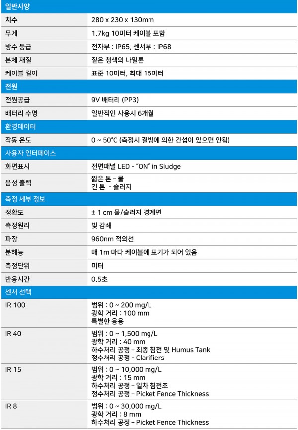 ÁÖ¹®Á¤º¸ ¡¤ 107800 SludgeWatch 715 ¡¤ Portable c/w IR100 Sensor (Cable Length: 10 metres) ¡¤ 100610 SludgeWatch 715 Portable c/w IR40 Sensor (Cable Length: 10 metres) ¡¤ 107790 SludgeWatch 715 Portable c/w IR15 Sensor (Cable Length: 10 metres) ¡¤ 141300 SludgeWatch 715 Portable c/w IR8 Sensor (Cable Length: 10 metres)