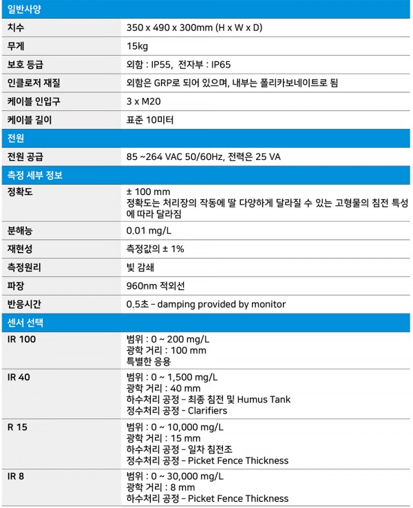 ÀåÁ¡ ¡¤ »ç¿ëÀÌ °£Æí ¡¤ ¼³Ä¡ºñ°¡ ¸Å¿ì Àú·Å ¡¤ ÀÚµ¿ Bridge Clearance Á¦¾î ¡¤ ½½·¯Áö °æ°è¸é ÃßÀû ¼¾¼ ¡¤ Tolerant of Porrly Formed Blanket »ç¿ëÇýÅà ¡¤ Blanket FailureÀÇ Á¶±â °æº¸ ¡¤ ÀÚµ¿ De-sludging ¡¤ Blanket Breakdown¿¡ ÀÇÇØ È¥¶õÀ» ¹ÞÁö ¾ÊÀ½ ȣȯ°¡´ÉÇÑ ¼¾¼ ¡¤ Àû¿Ü¼± ¼¾¼µé ´ëü°¡´ÉÇÑ ¼¾¼µé ¡¤ 8200w2 ¡¤ SludgeWatch 715 ÀÀ¿ëºÐ¾ß ¡¤ ÃÖÁ¾ ħÀüÁö ¸ð´ÏÅ͸µ ¡¤ ÀÏÂ÷ ħÀüÁö ¸ð´ÏÅ͸µ ¡¤ WRC Thickerns ¡¤ Clarifiers