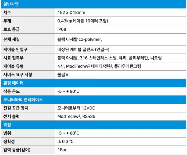 WaterTechw©÷ TMP ¿Âµµ ¼¾¼´Â ±¤¹üÀ§ÇÑ »ê¾÷ ¿Âµµ ¹üÀ§¿¡¼ ȹ±âÀûÀÎ ¼º´ÉÀ» Á¦°øÇÏ´Â Á¤¹Ð ÀåÄ¡ÀÔ´Ï´Ù. +/- 0.3¡ÆCÀÇ ÃøÁ¤ Á¤È®µµ·Î -5¡ÆC ~ +80¡ÆC »çÀÌ¿¡¼ »ç¿ëÇϵµ·Ï ¼³°èµÇ¾ú½À´Ï´Ù. ³»ºÎ ¿Âµµ ¼¾¼´Â »ç¿ëÀÚ°¡ ¼öÁ¤Çϰųª º¸Á¤ÇÒ ÇÊ¿ä ¾øÀÌ Àüü Á¤°Ý ¿Âµµ ¹üÀ§¿¡¼ ³ôÀº Á¤È®µµ¿Í ¼±Çü¼ºÀ» °®½À´Ï´Ù. TMP ¼¾¼ ³»ÀÇ °ËÃâ±â´Â ³»ºÎ ¹êµå °¸ ±âÁØ, ¿Âµµ ¼¾¼ ¹× 16ºñÆ® ¾Æ³¯·Î±×-µðÁöÅÐ º¯È¯±â¸¦ Æ÷ÇÔÇÏ´Â ±Ý¼Ó ¿ Àüµµ ½Ç¸°´õ·Î ±¸¼ºµË´Ï´Ù. ±× °á°ú °ß°íÇϰí Á¤È®ÇÏ¸ç »ç¿ëÀÌ °£ÆíÇÏ°í ¾ÈÁ¤ÀûÀÎ ÃÊÀú¿Â µå¸®ÇÁÆ® ÃøÁ¤ÀÌ °¡´ÉÇÕ´Ï´Ù. °ËÃâ±â ³¡Àº °ËÀº»ö ¾Æ¼¼Å» ÇϿ졿¡ ÅëÇյǾî ÀÖ½À´Ï´Ù.