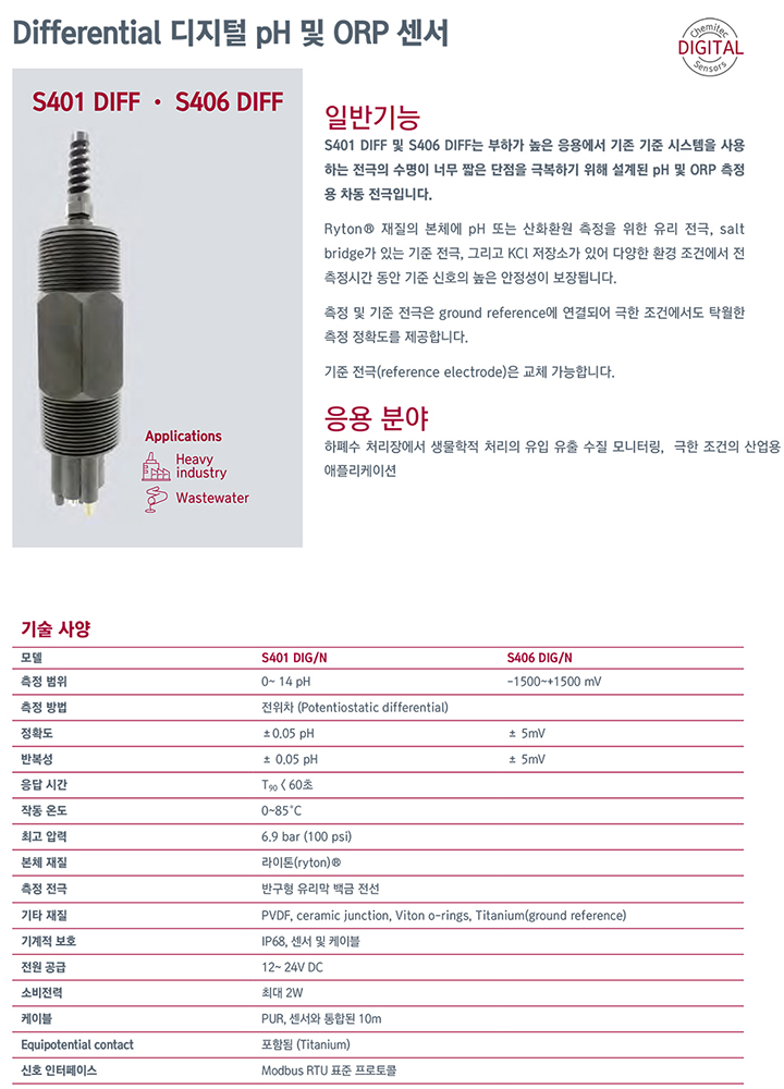 | Á¦Ç°¸í | µðÁöÅÐ Differential pH ¹× ORP ¼¾¼ S401DIFF, S406DIFF |