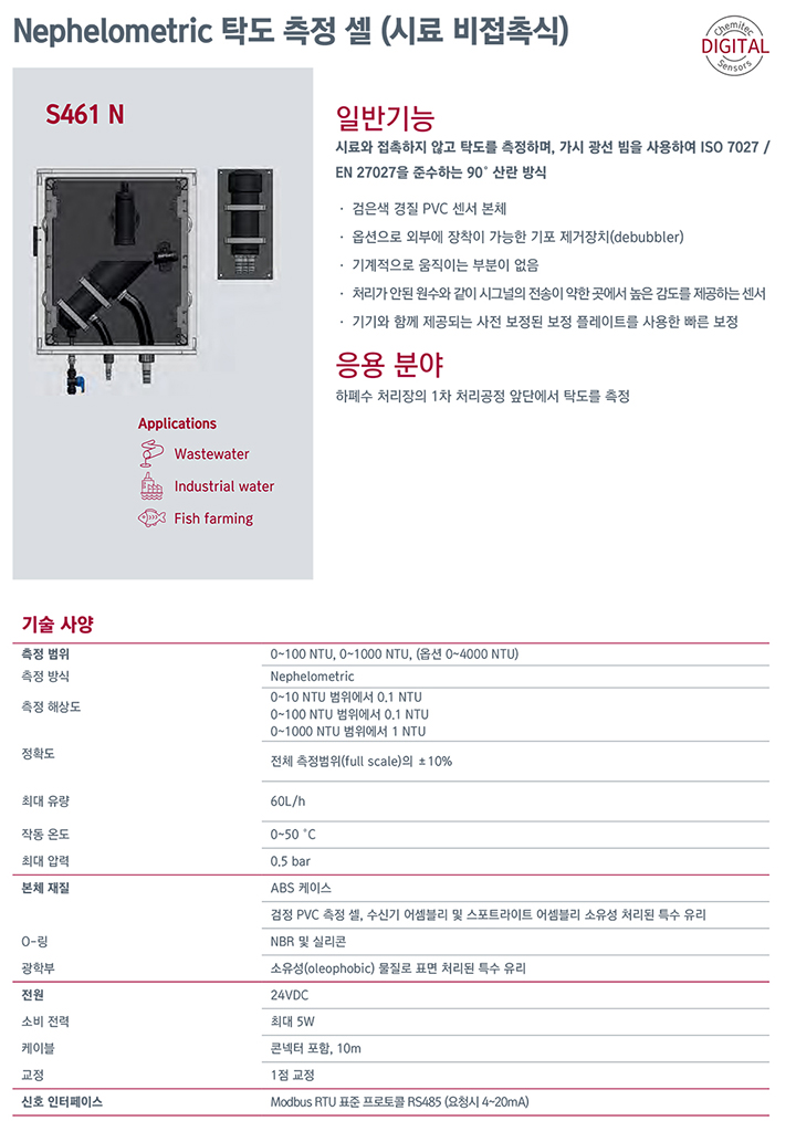 | Á¦Ç°¸í | Nephelometric ʵµ (ºñÁ¢Ã˽Ä) ¼¾¼, S461 N |
