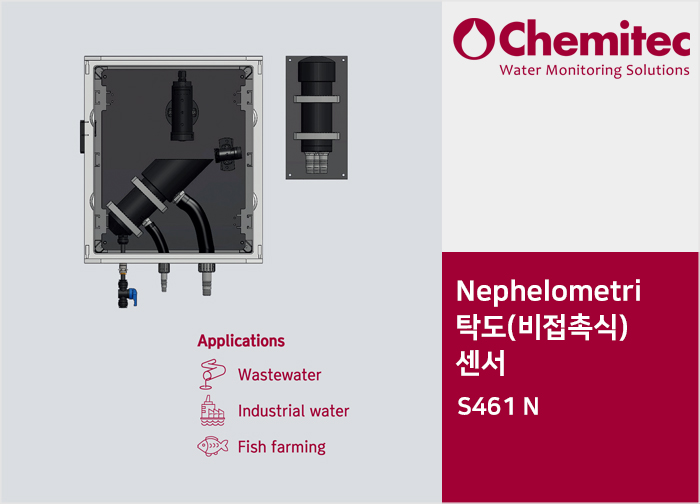 ³»¿ë Nephelometric ʵµ (ºñÁ¢Ã˽Ä) ¼¾¼­, S461 NS461 N ºñÁ¢ÃË½Ä Nephelometric ʵµ(Turbidity) ¼¾¼­´Â 0~100 NTU ¶Ç´Â 0~1000 NTU ÃøÁ¤ÀÌ °¡´ÉÇϸç, ISO 7027 / EN 27027 ±ÔÁ¤¿¡ µû¸¥ 90¡Æ »ê¶õ±¤ ¹æ½ÄÀ¸·Î ÃøÁ¤ÇÏ..