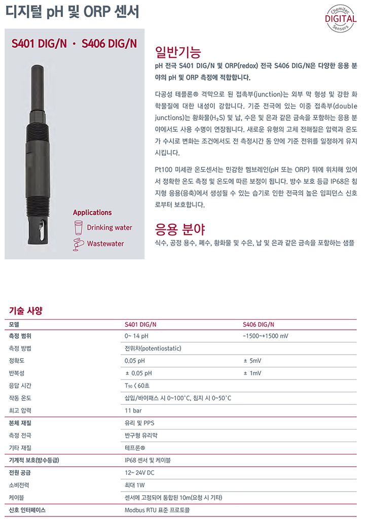 | Á¦Ç°¸í | µðÁöÅÐ pH ¹× ORP ¼¾¼ S401 DIG/N , S406 DIG/N |